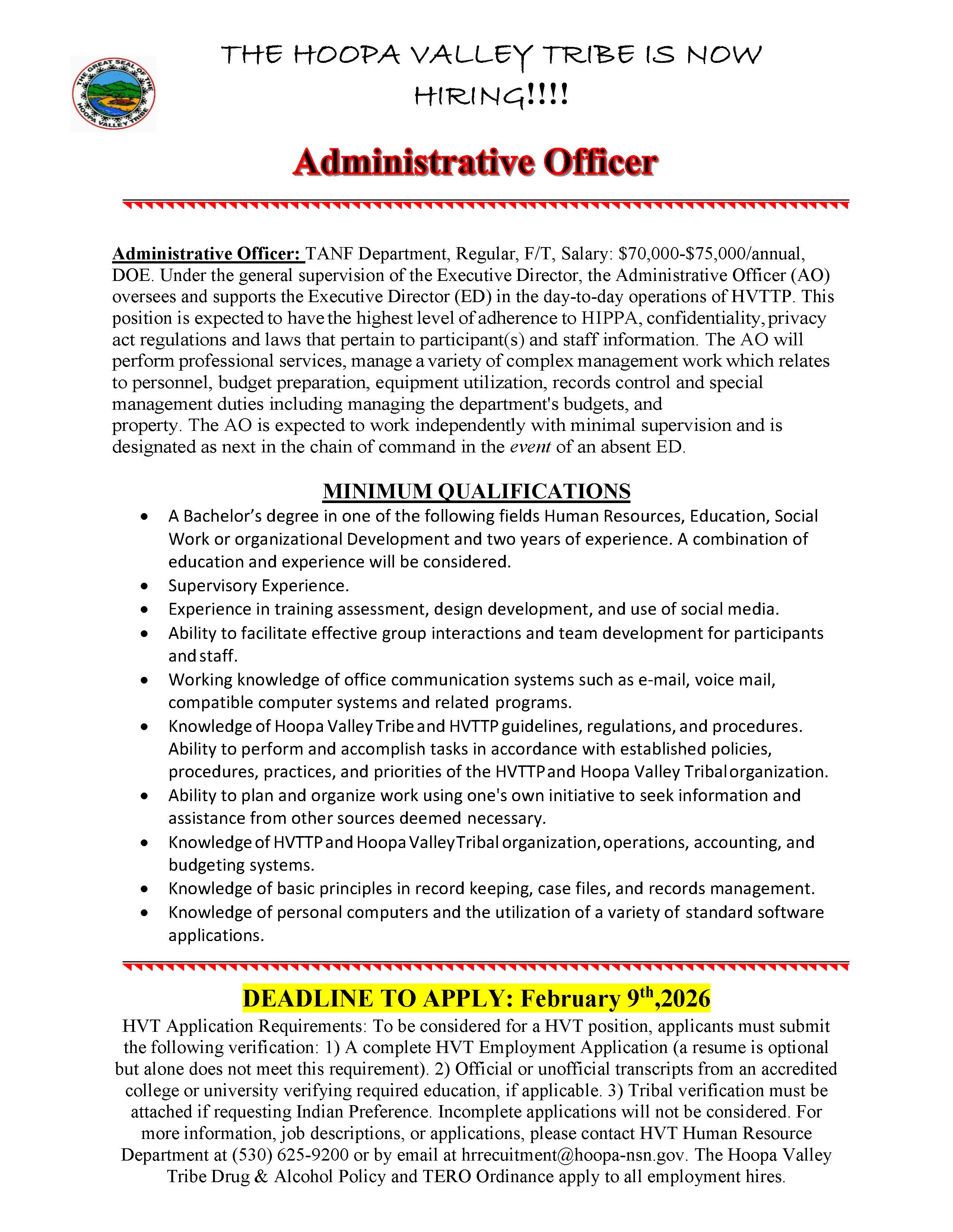 RFP: Catering Services for Hoopa Valley Tribe Quarterly Membership Meeting