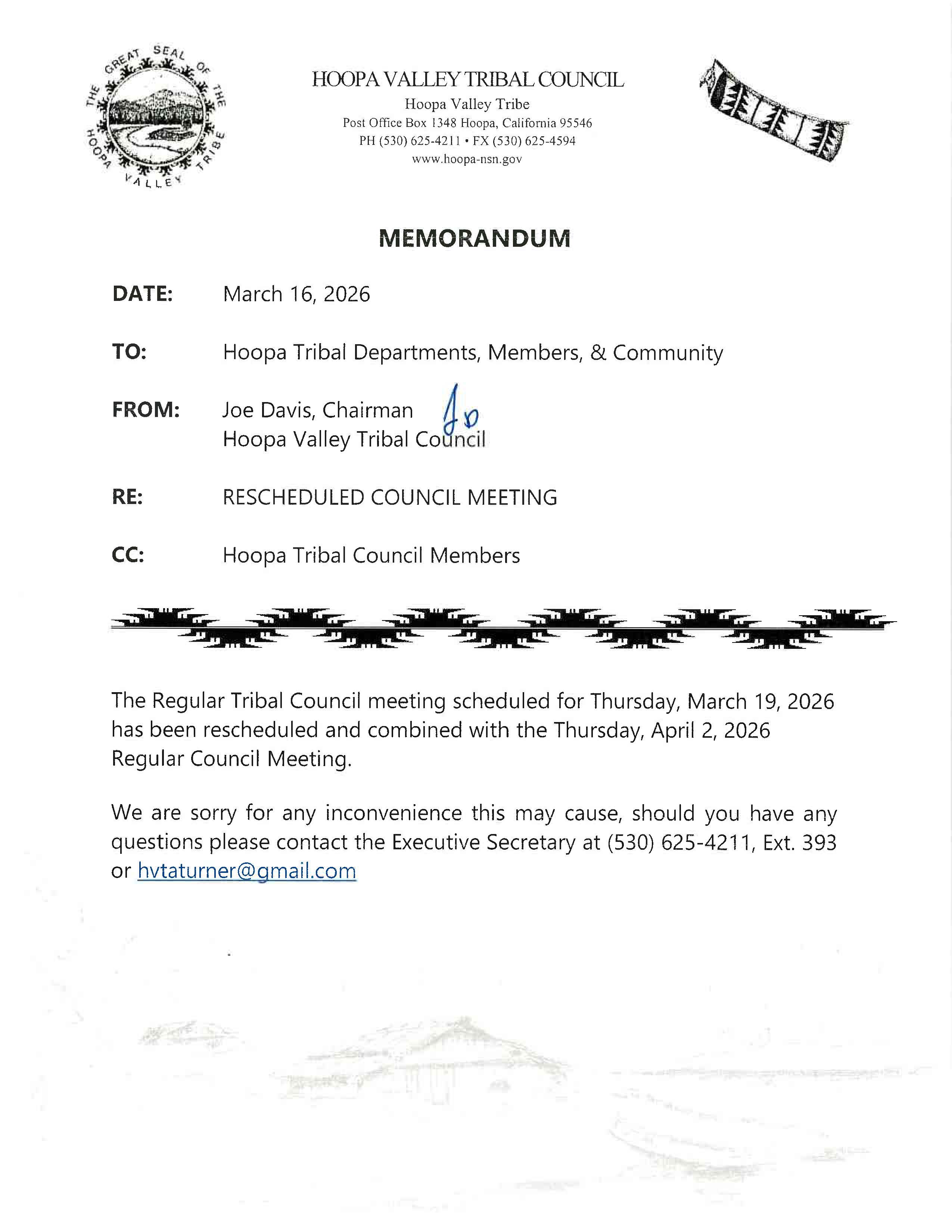 Hoopa Valley Tribe Council Meetings Information