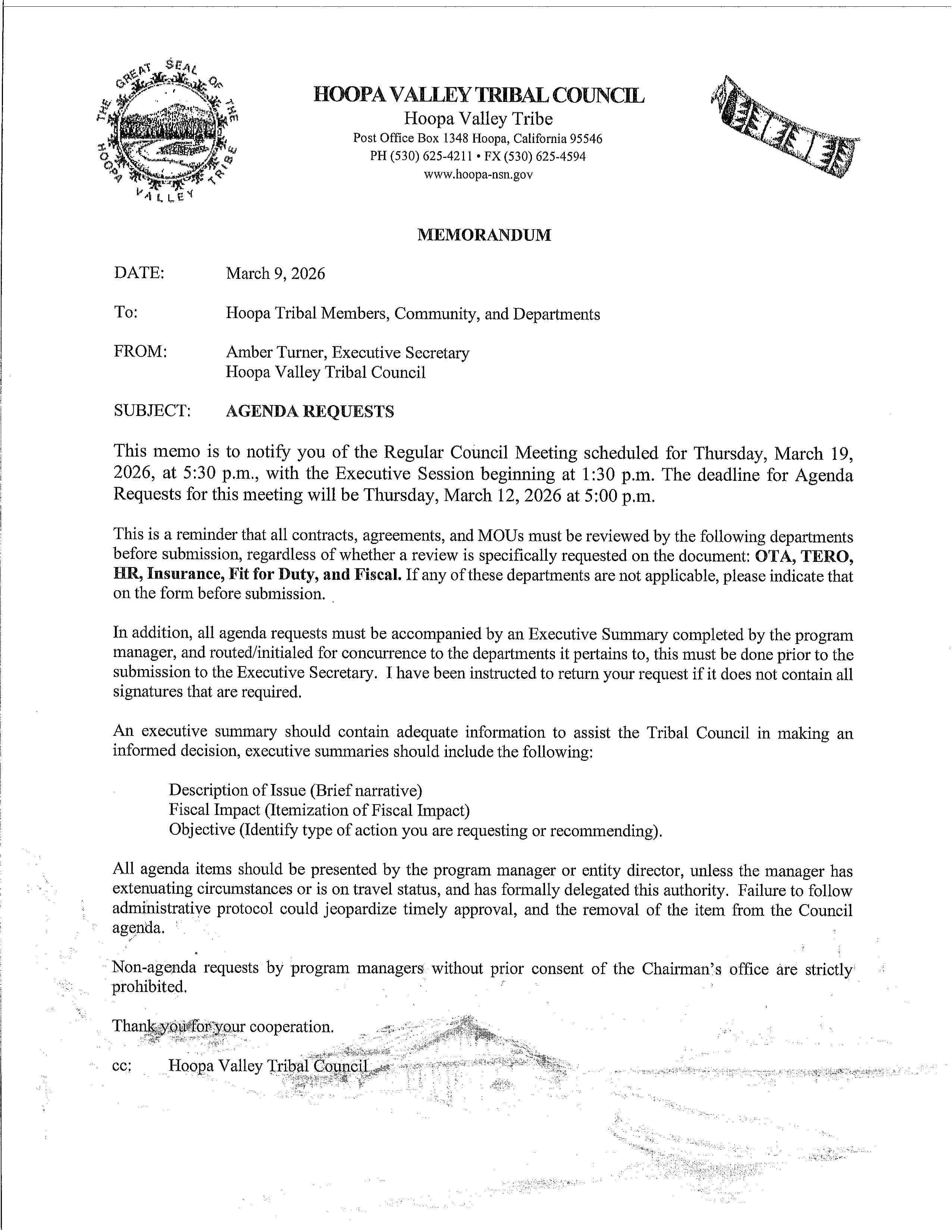 Welcome to the Hoopa Valley Tribe Council Meetings Information page.